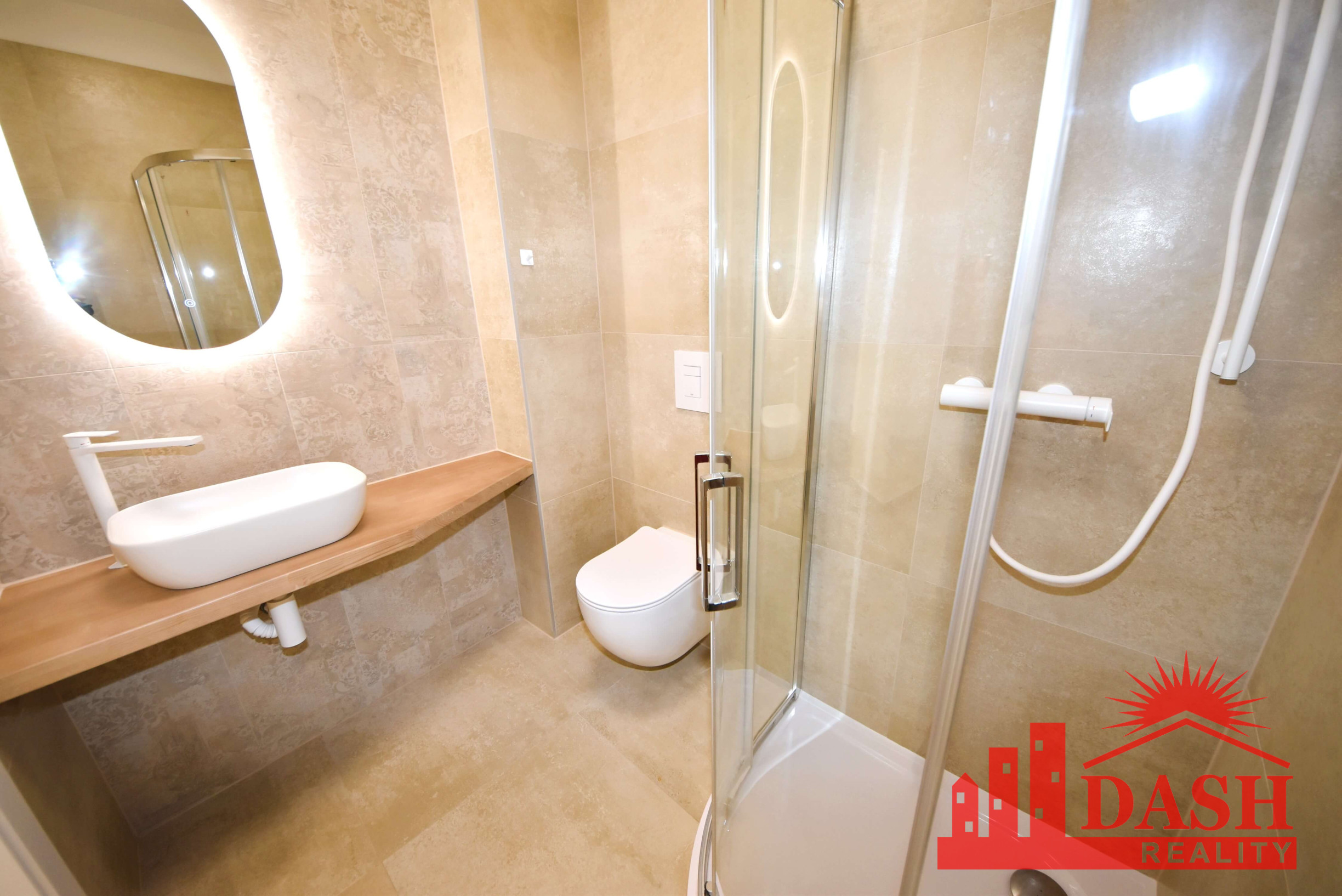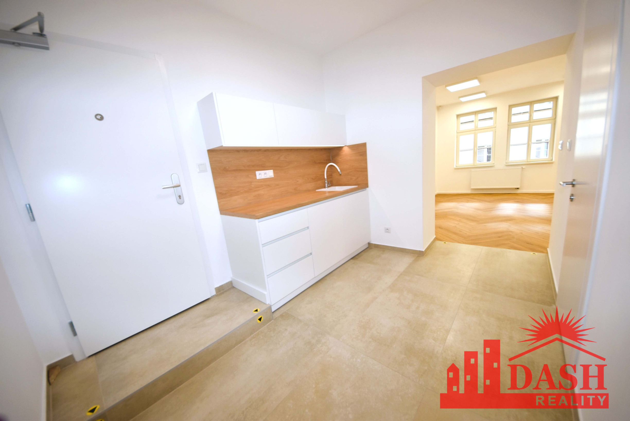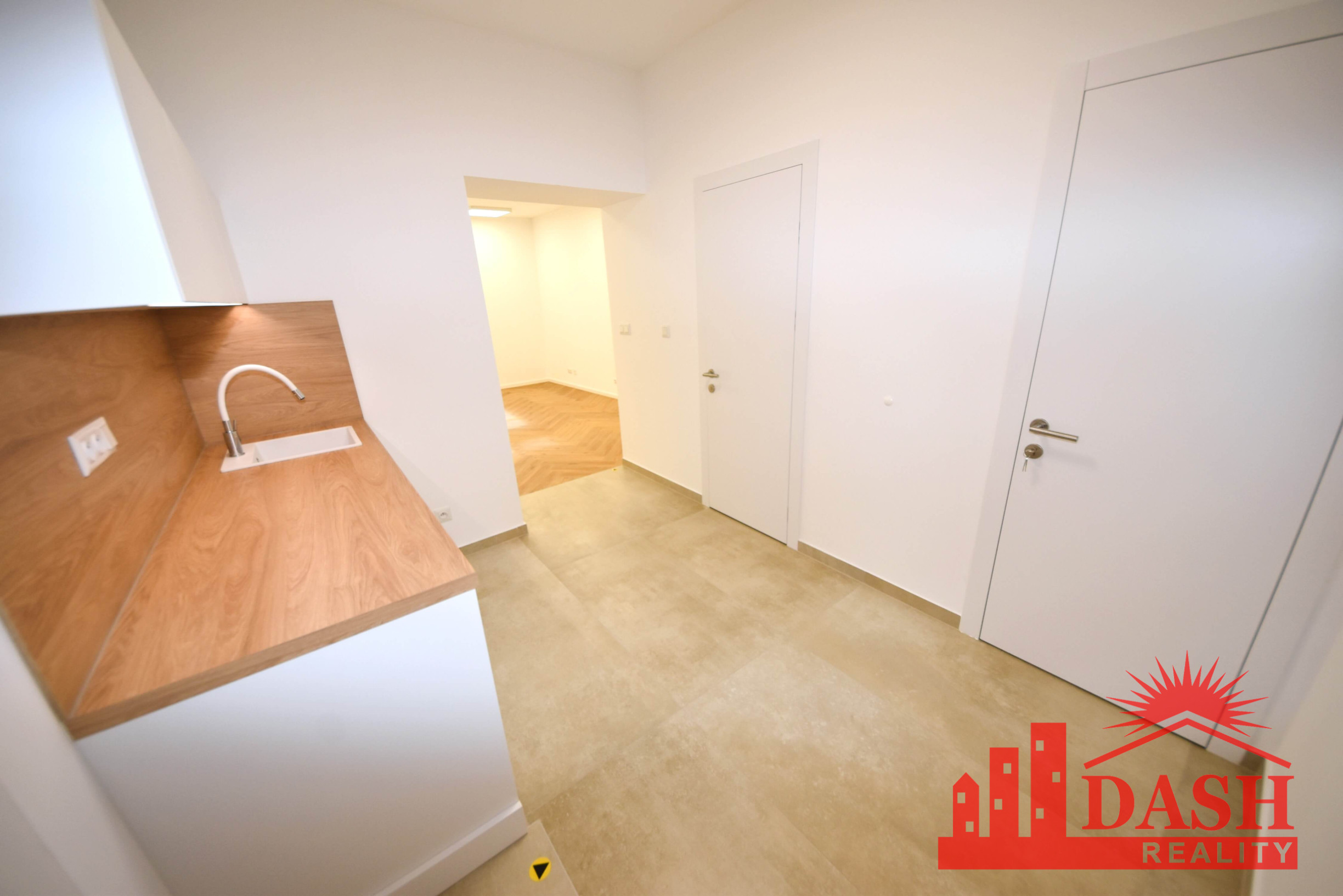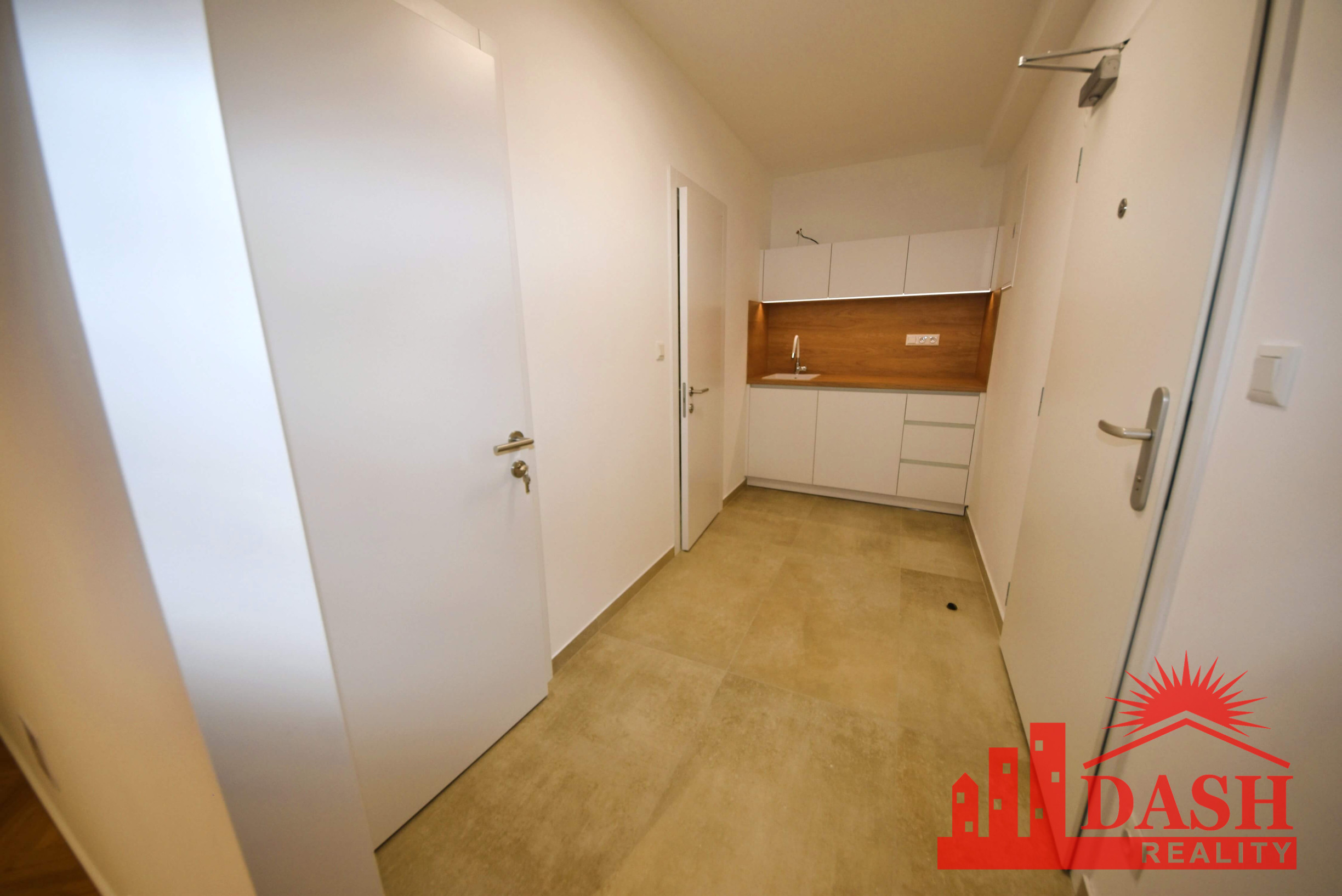 Dispozícia priestoru: vstupná miestnosť s kuchynskou linkou, kúpeľňa so sprchovacím kútom a WC, sklad-šatník, hlavná miestnosť.